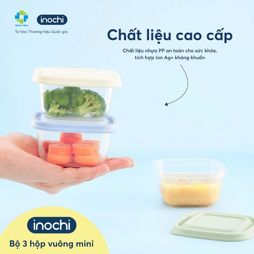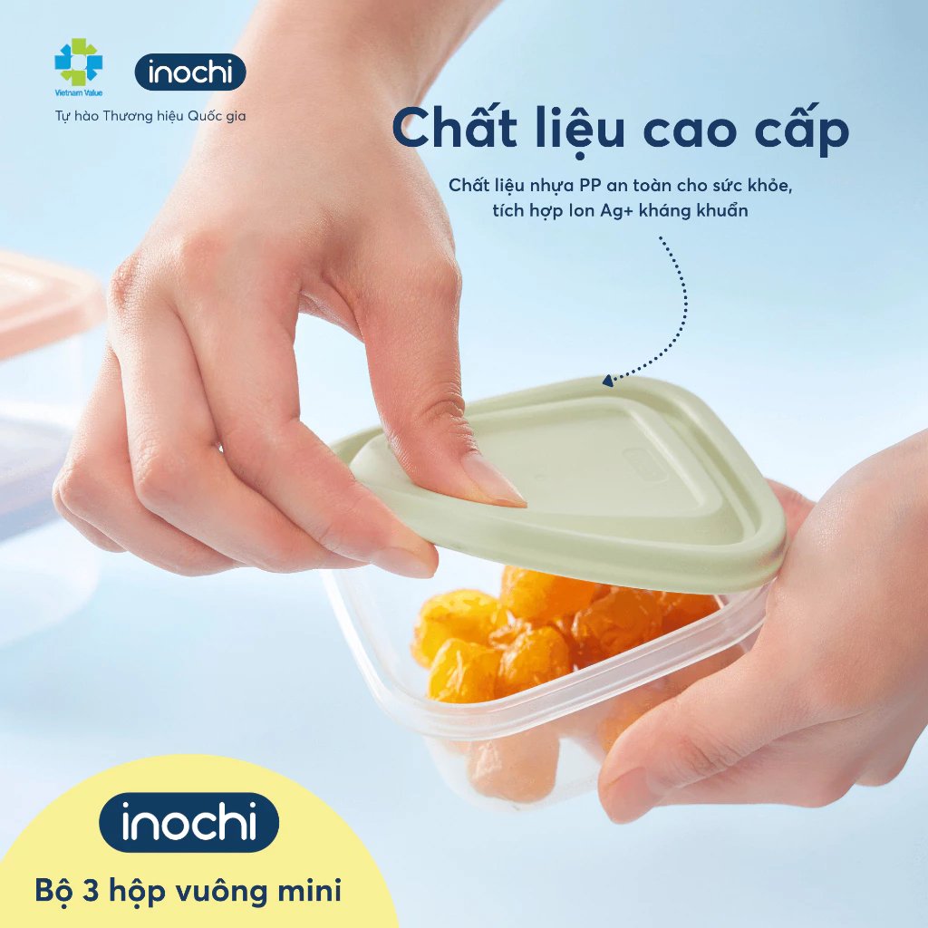 Bộ 3 Hộp Thực Phẩm Vuông Mini 250ml Inochi được thiết kế thông minh cho lối sống hiện đại: nhỏ gọn, kín hơi, dễ xếp gọn, hỗ trợ bạn chuẩn bị sẵn thực phẩm cho cả tuần và mang theo khi cần.