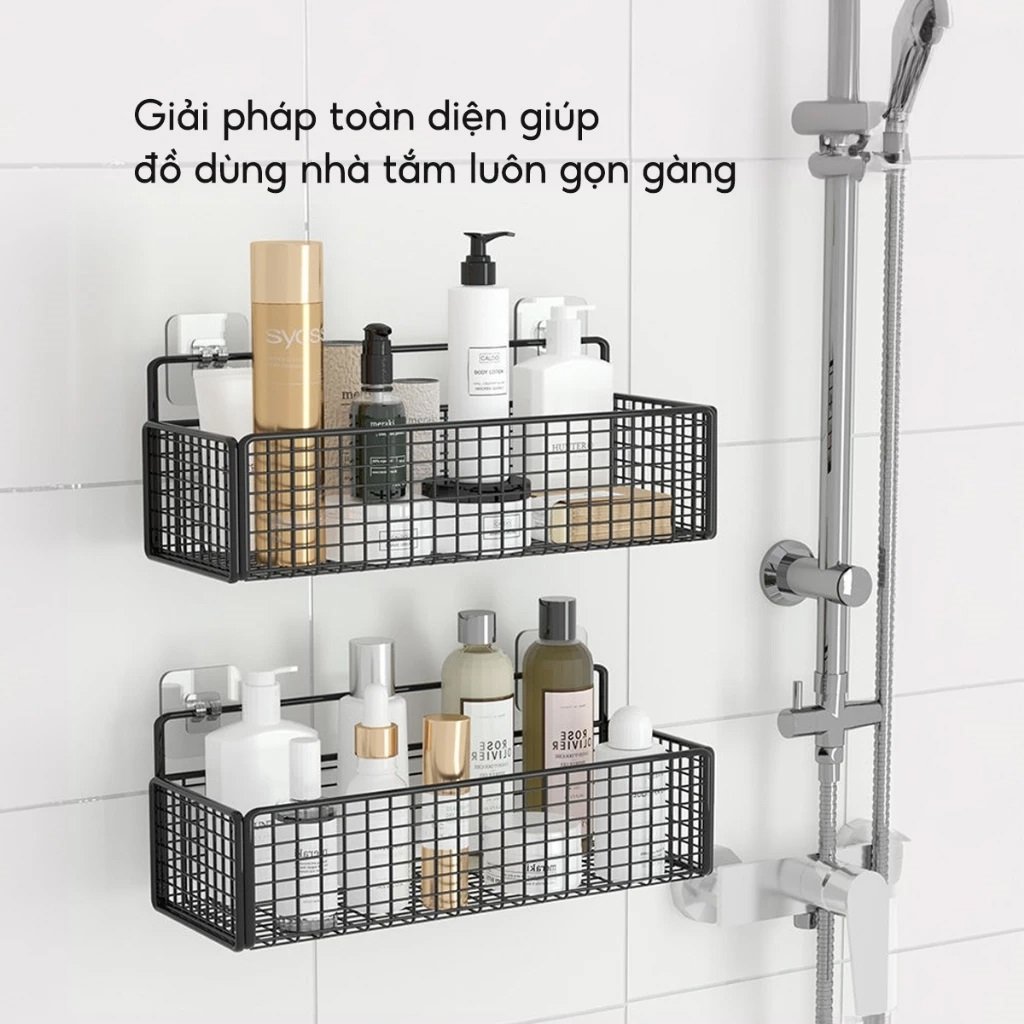 Bề mặt kệ dạng lưới nhiều khe hở giúp nước thoát nhanh, hạn chế đọng nước, giữ cho đồ dùng khô ráo và sạch hơn. Đây là điểm rất tiện lợi khi dùng để đựng sữa tắm, dầu gội hoặc các chai lọ thường xuyên ướt nước.